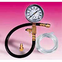 Fuel Injection Pressure Test Kit An essential tool for use on fuel-injected vehicles for detecting leaking injectors, fuel rail deterioration, malfunctioning fuel pump check valves and more. 0-100 p.s.i. test gauge. Test gauge. Pressure relief valve. Drain tube. GM, Chrysler & Ford adapters for vehicles equipped with test ports on the fuel rail.